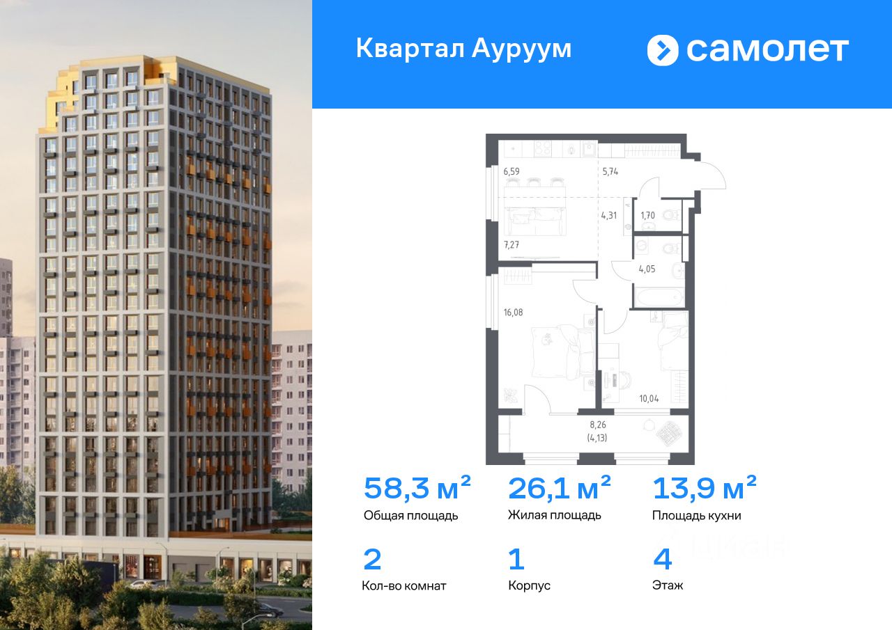 Строим кварталы для жизни с заботой о будущем. Предлагается 2-комнатная квартира бизнес-класса 58,3 кв.м в корпусе 1 на 4 этаже, в ЖК ''Квартал Ауруум'' Квартира с предчистовой отделкой. Доступность дополнительных опций уточняйте у застройщика.
