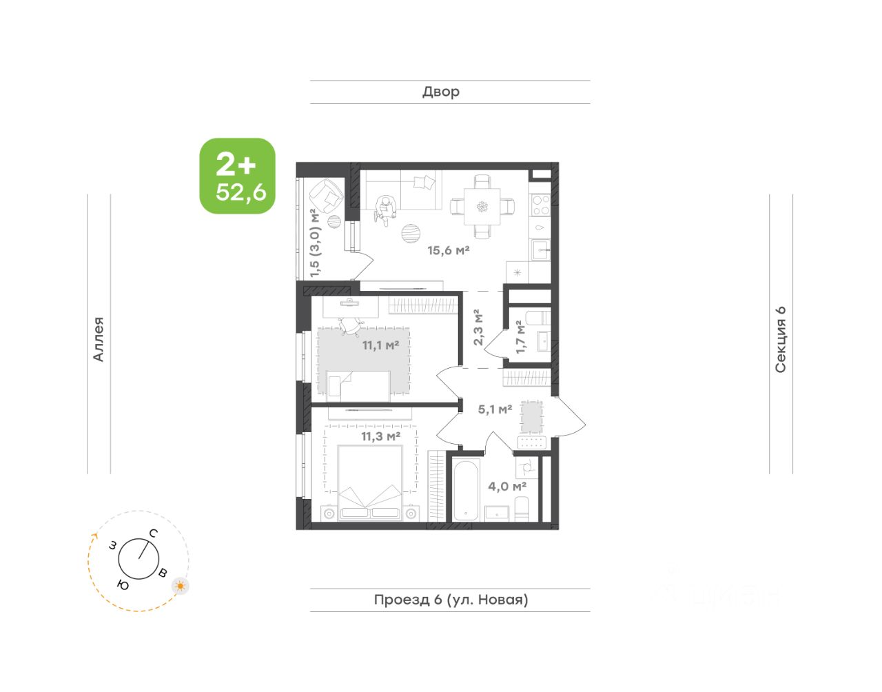 Квартира для тех, кто хочет окунуться в мир современного уюта и функциональности Концепция ''тихий дом'': все квартиры в доме с чистовой отделкой, никаких шумных ремонтных работ с утра до вечера Кухня-гостиная 15,6 м² объединяет в себе стиль и практичность, а выход на лоджию 3,0 м² с видом на аллею дарит ощущение спокойствия и свежести Родительская спальня 11,3 м² становится личным уютным уголком, где предусмотрено место под шкаф для идеальной организации пространства Детская 11,1 м² — светлая и радостная, с продуманным местом под шкаф, где каждая деталь способствует комфортному росту и развитию Просторная прихожая 5,1 м² со шкафом-купе позволяет хранить вещи аккуратно и организованно Коридор 2,3 м² создаёт плавное и логичное соед