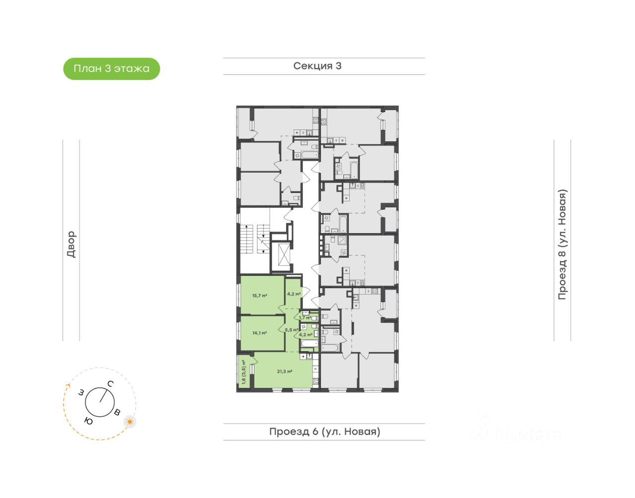 Квартира для тех, кто любит весёлые компании и тихое уединение Кухня-гостиная 21,3 м² объединяет в себе стиль и практичность, а выход на лоджию 3,5 м² с видом на двор дарит ощущение спокойствия и свежести Родительская спальня 15,7 м² становится личным укромным уголком, где предусмотрено место под шкаф для идеальной организации пространства Детская 14,1 м² — светлая и радостная, с продуманным местом под 2 шкафа, где каждая деталь способствует комфортному росту и развитию Прихожая 4,2 м² со шкафом-купе позволяет хранить вещи аккуратно и организованно Коридор 5,5 м² создаёт плавное и логичное соединение между всеми зонами квартиры Два санузла — один 4,2 м² с ванной и местом под стиральную машину, и второй 1,7 м², компактный, но максимально функциональный, для комфорта всей семьи