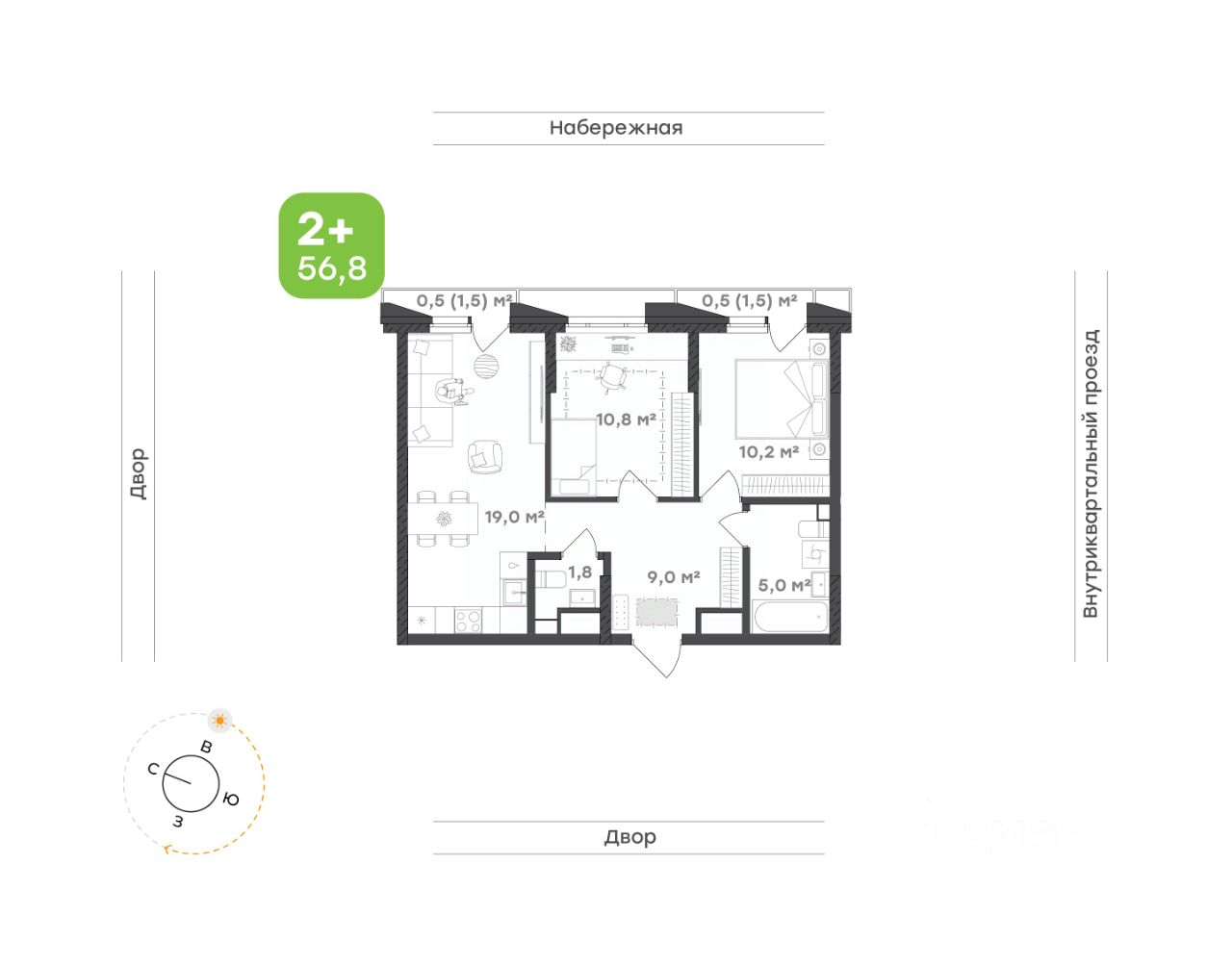 Французские балконы позволят визуально увеличить пространство, сделав комнаты ещё светлее и просторнее Два санузла один с ванной и местом под стиральную машину для расслабляющих процедур, и второй, компактный и практичный, для повседневного использования