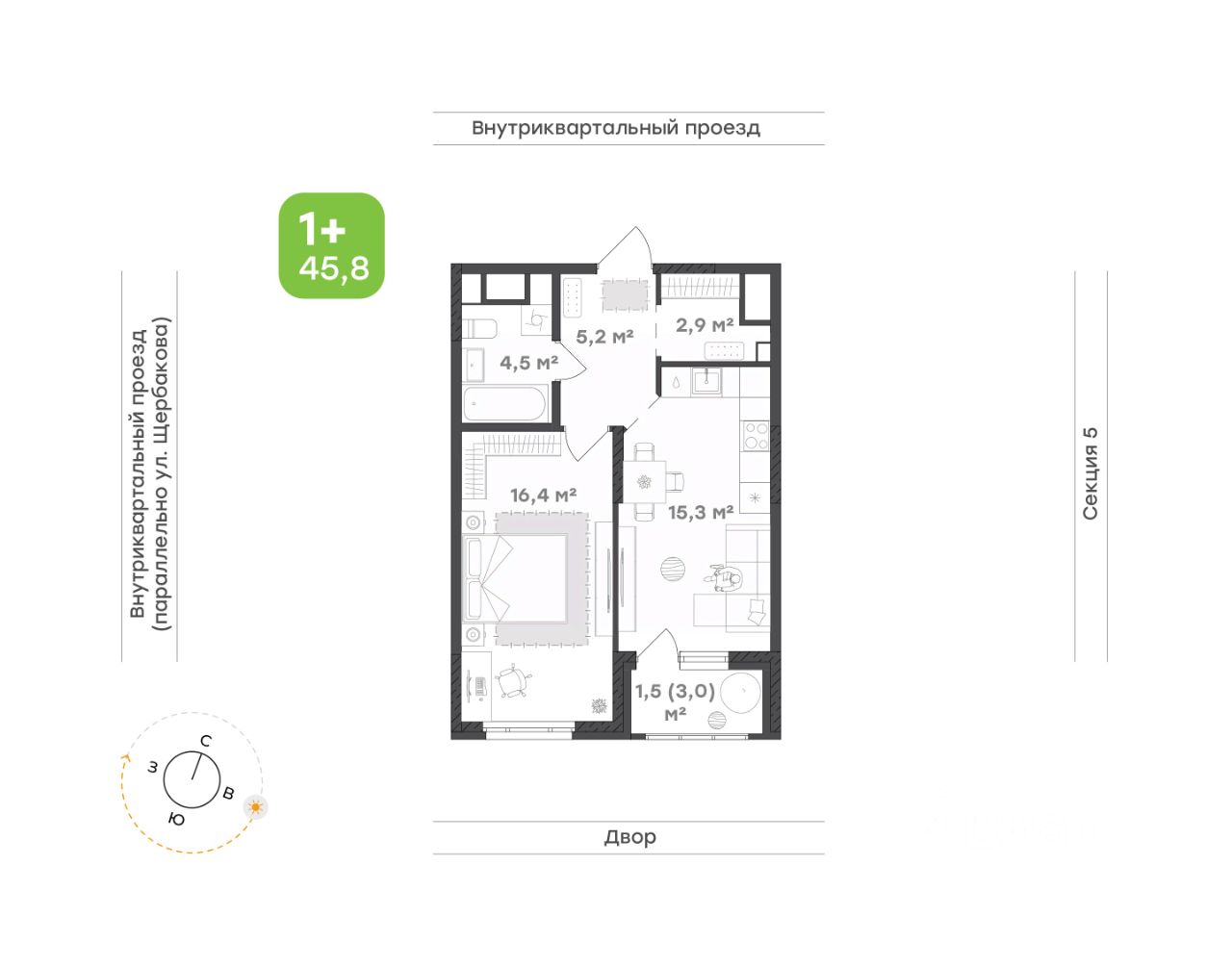 продам 1-к, Щербакова, 138 стр.5 956 700 ₽