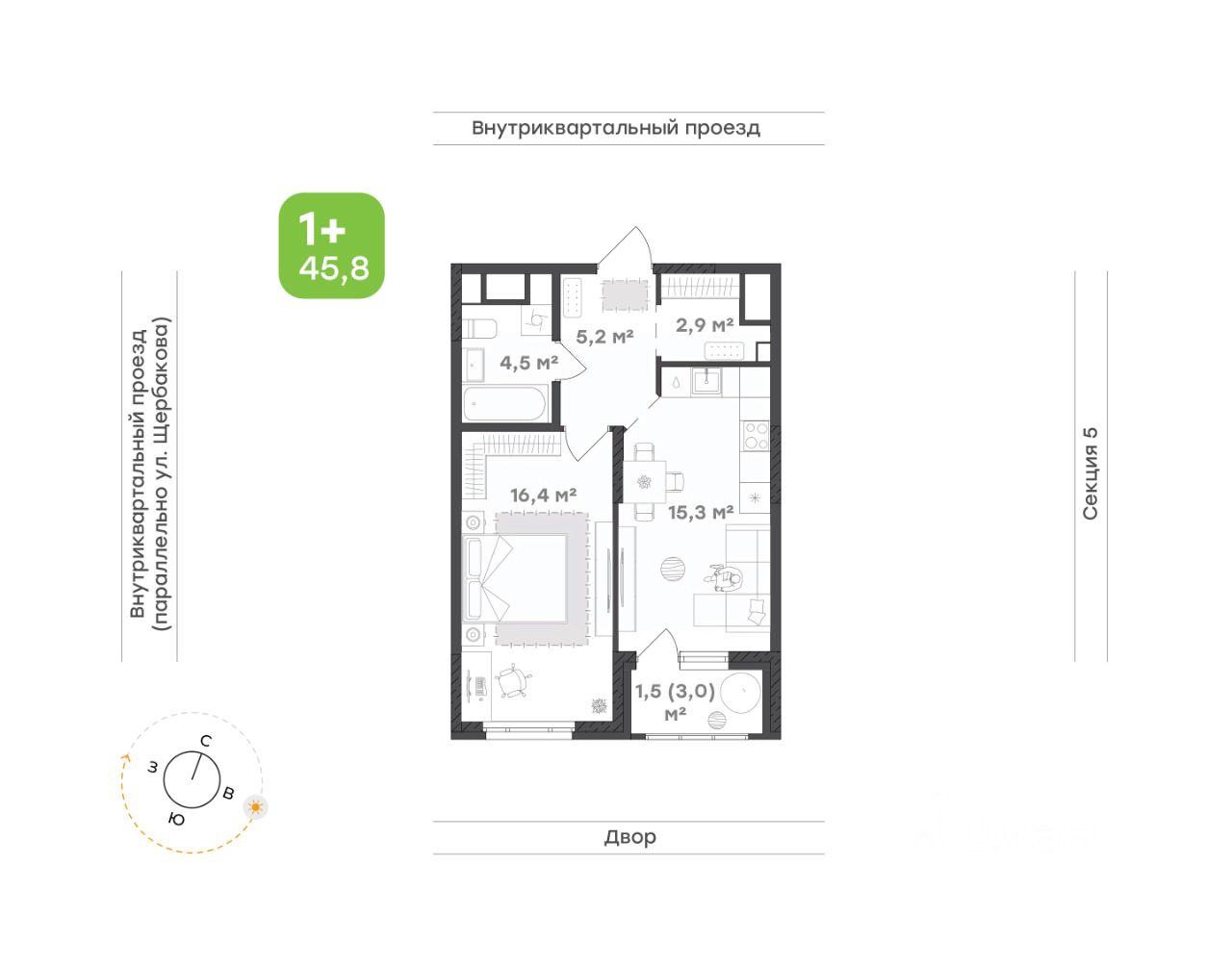 продам 1-к, Щербакова, 138 стр.6 007 300 ₽