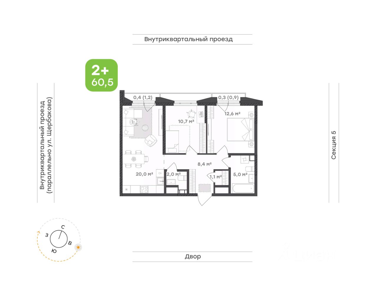Детская — светлая и радостная, с зоной под вместительный шкаф, где каждая деталь способствует комфортному росту и развитию Два санузла — один с ванной и местом под стиральную машину, и второй, компактный, но максимально функциональный, для комфорта всей семьи Функциональная прихожая с возможностью обустроить систему хранения. Вещи всегда под рукой, но не на виду
