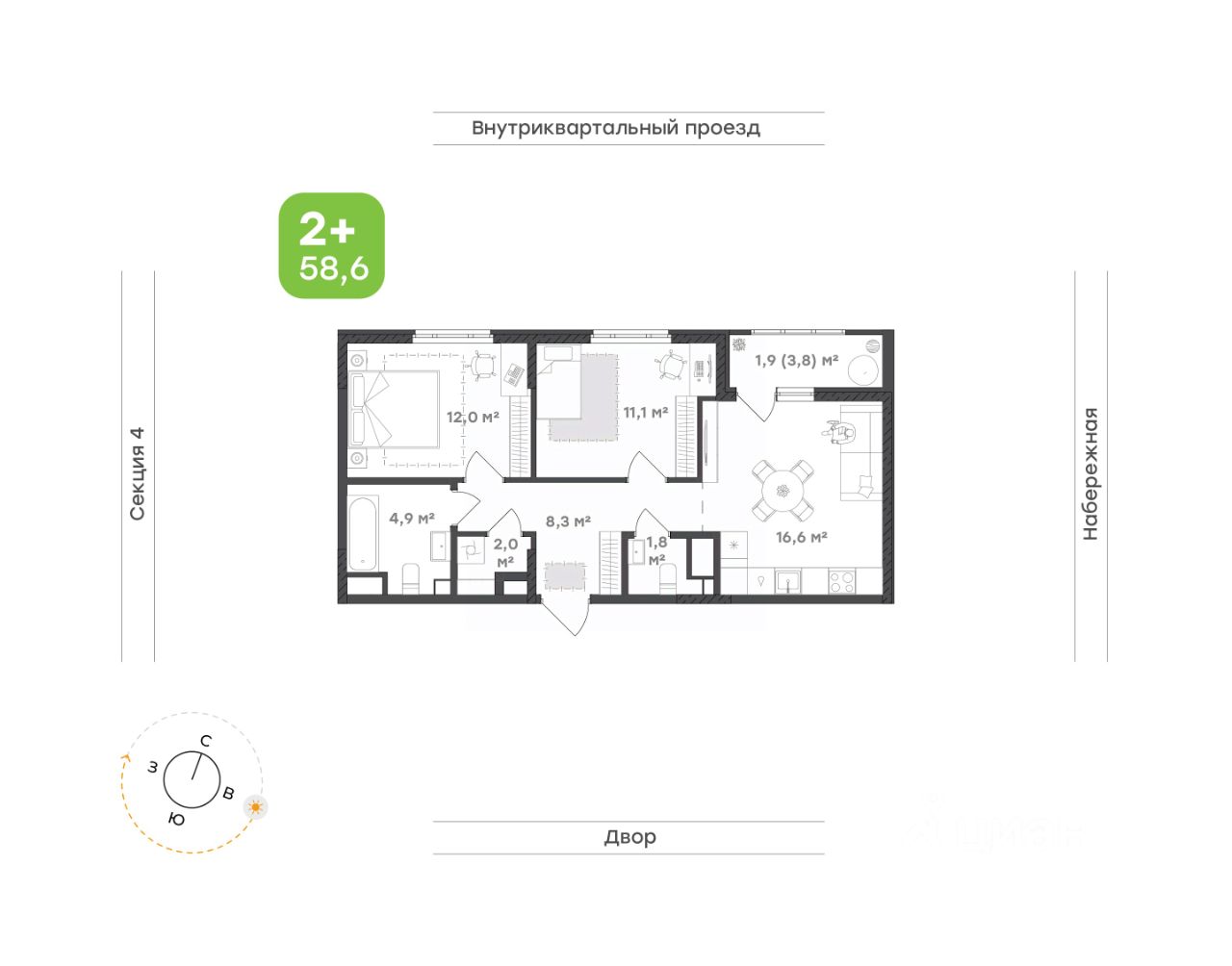 продам 2-к, Щербакова, 138 стр.6 941 500 ₽