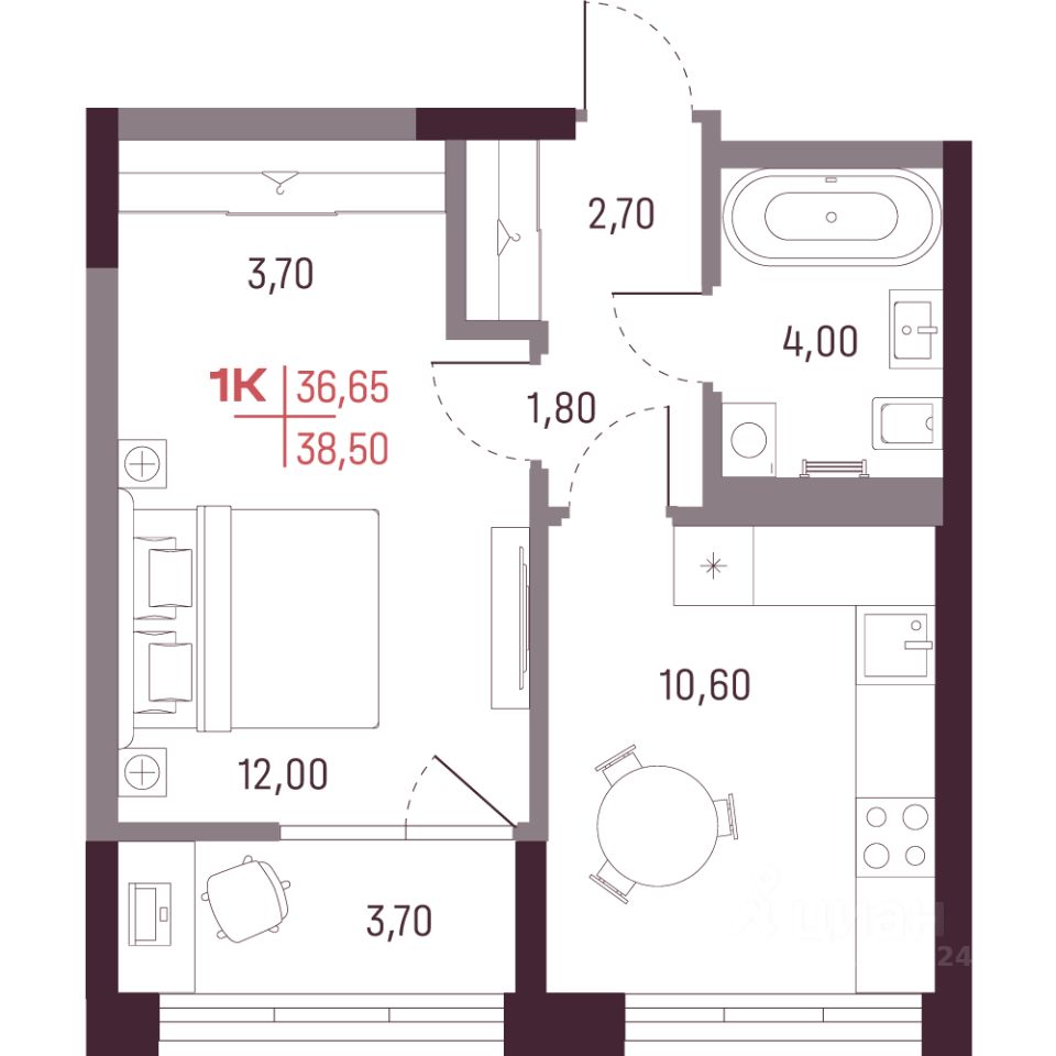 продам 1-к, Академика Ландау, 19.1.1 стр.6 706 950 ₽
