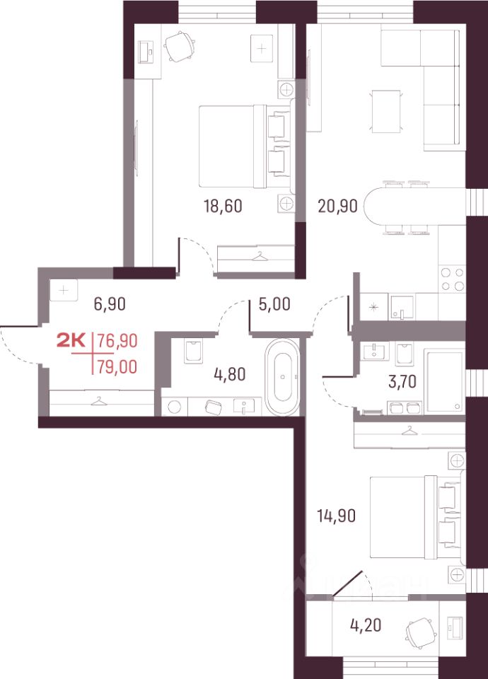 продам 2-к, Академика Ландау, 19.1.1 стр.11 458 100 ₽