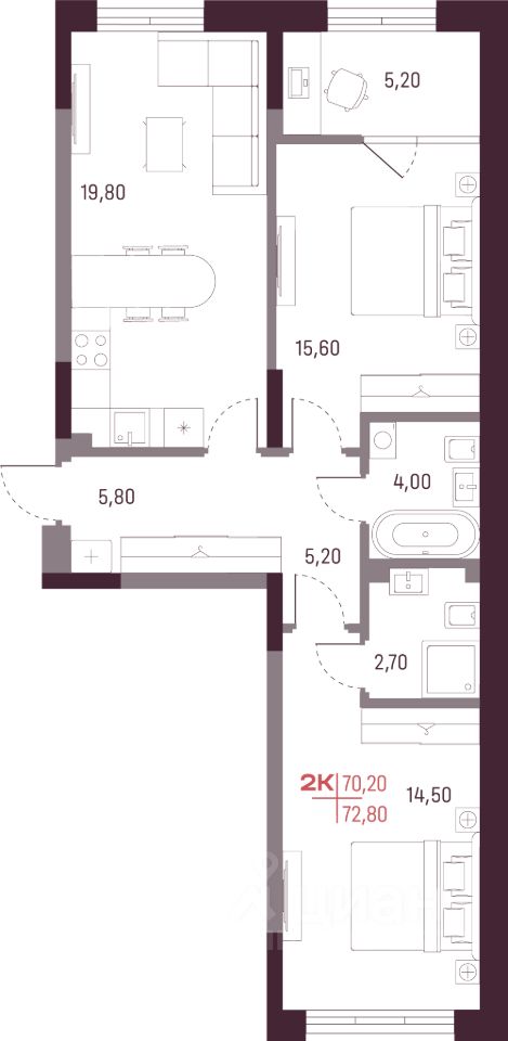 • Продуманные планировки с мастер-спальнями, гардеробными и даже ванными комнатами с окном.