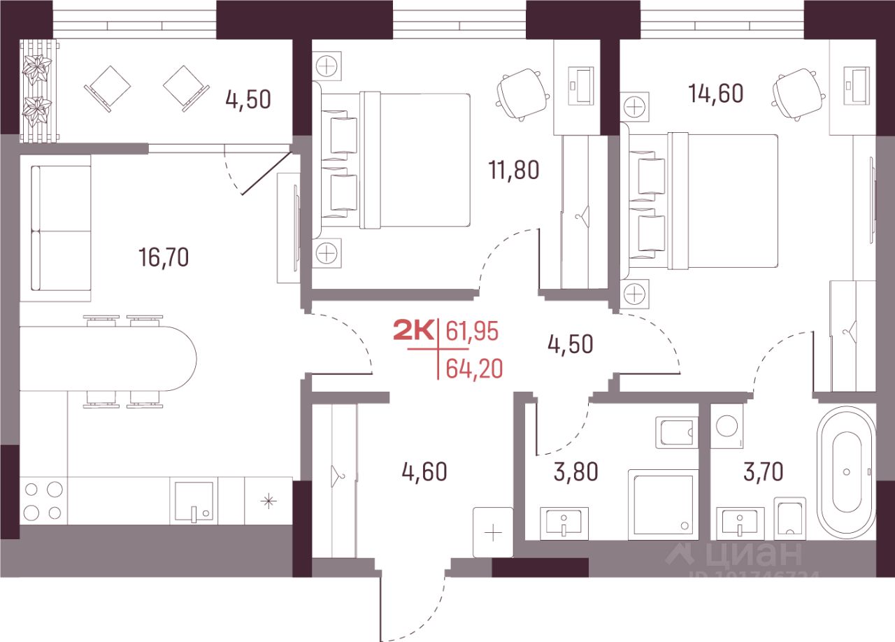 Компактная евро 3-х комнатная квартира. Большая кухня-гостиная с выходом на теплую лоджию. Детская и мастер спальня родителей со своим санузлом.