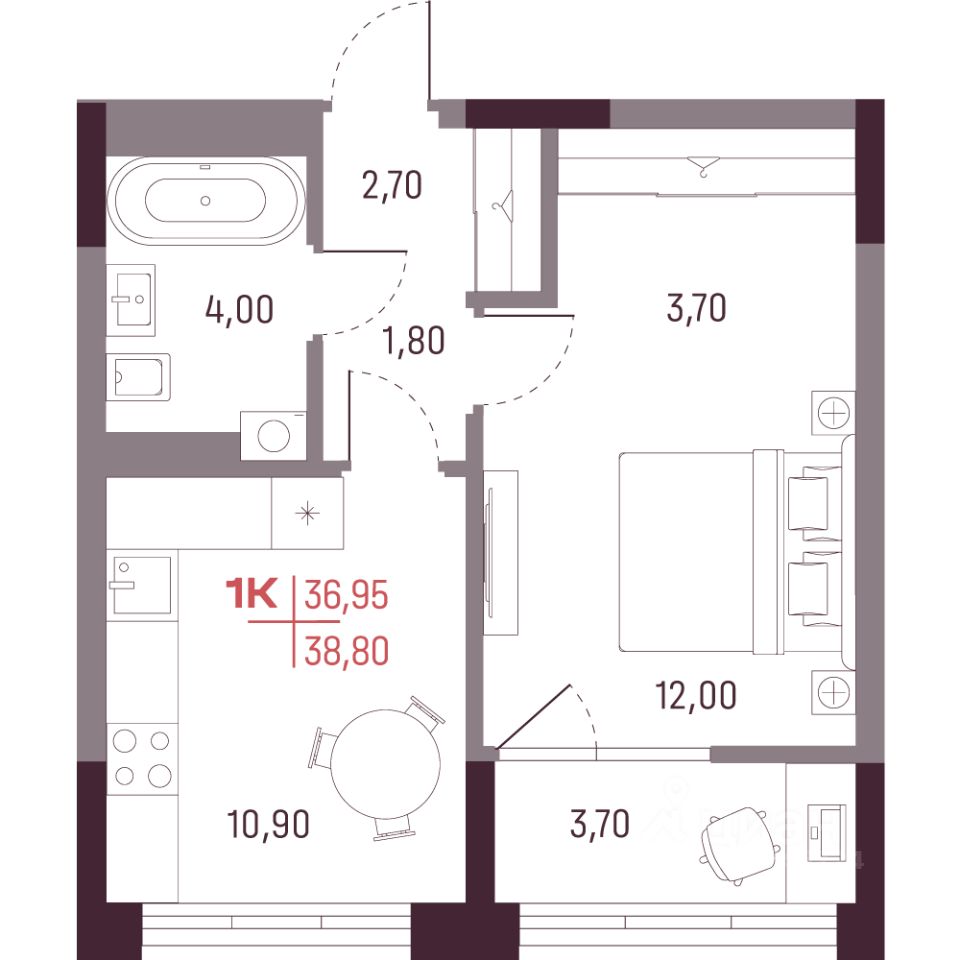 продам 1-к, Академика Ландау, 19.1.1 стр.6 835 750 ₽