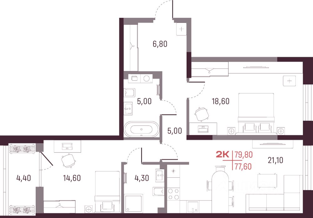Стоимость с учетом акции ''Отделка за 12 000 м²''. Не оферта.