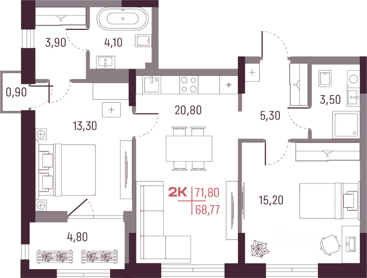 продам 2-к, Академика Ландау, 19.2 стр.10 968 815 ₽