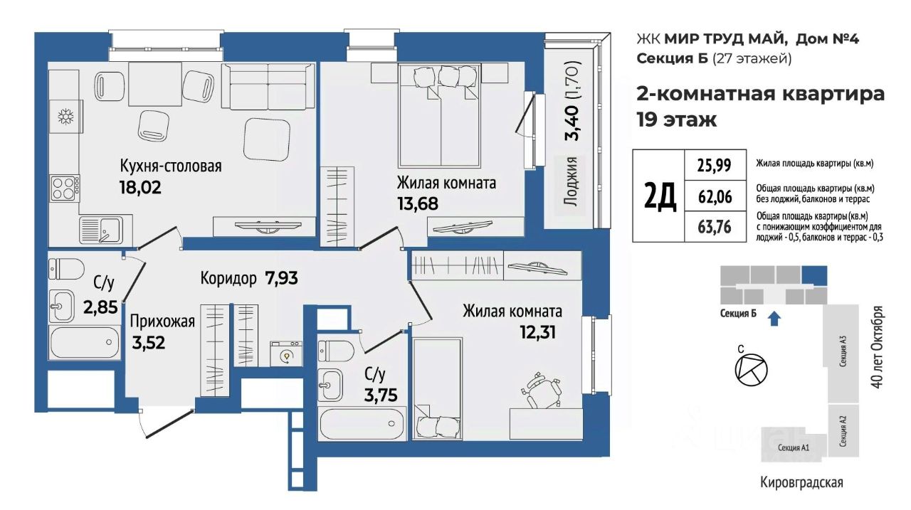 продам 2-к, 40-летия Октября, 31 стр.8 990 160 ₽