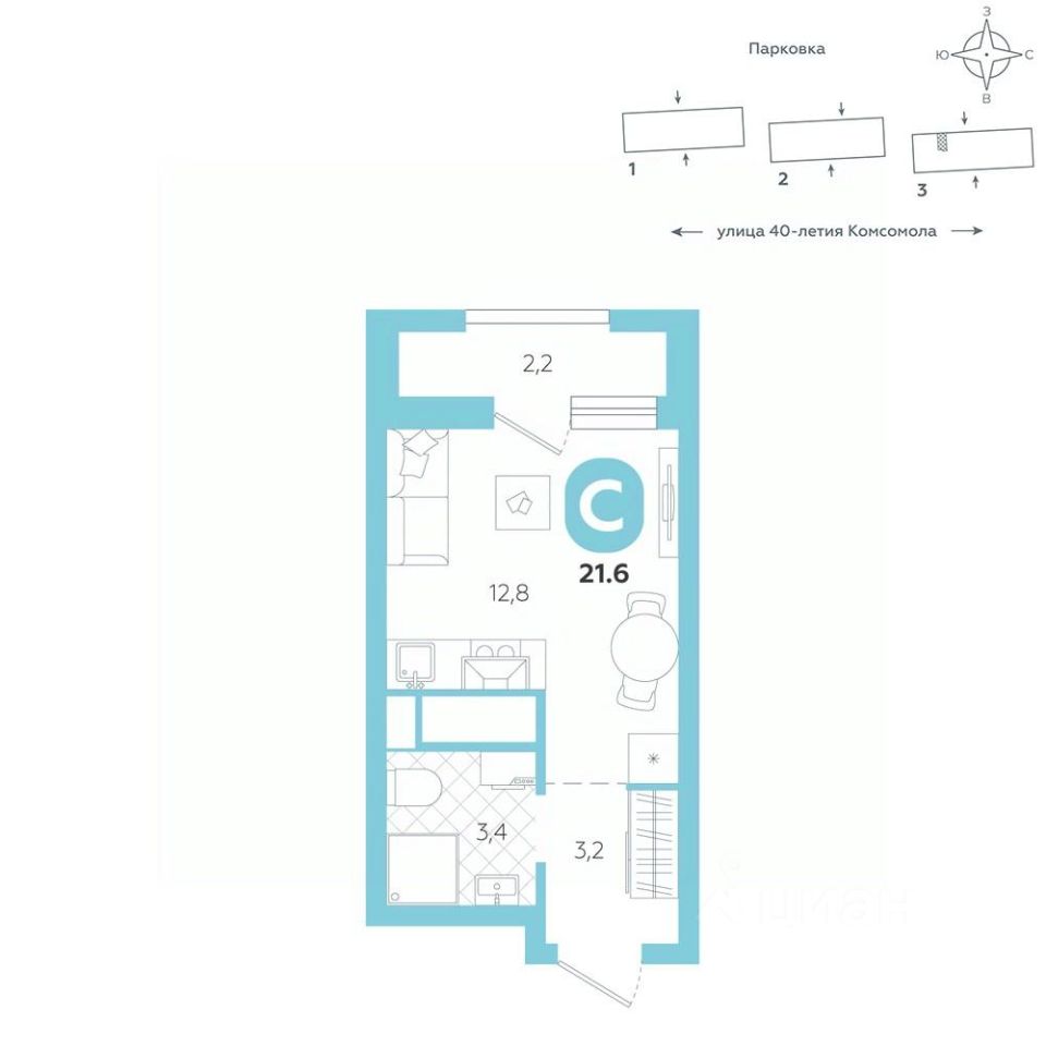 Квартира располагается в ЖК ''Комсомольский'' — жилом комплексе комфорт-класса. Здесь вы будете наслаждаться беззаботной жизнью, ведь ваш дом — воплощение практичности, безопасности и надежности. Для удобства предусмотрены колясочные на первых этажах домов, где можно оставить велосипеды и коляски в тепле. За безопасность отвечают система электронных ключей и видеонаблюдение. Еще здесь собственная котельная, поэтому в доме всегда будут горячая вода и оплата счетов только за фактически потребленное тепло.