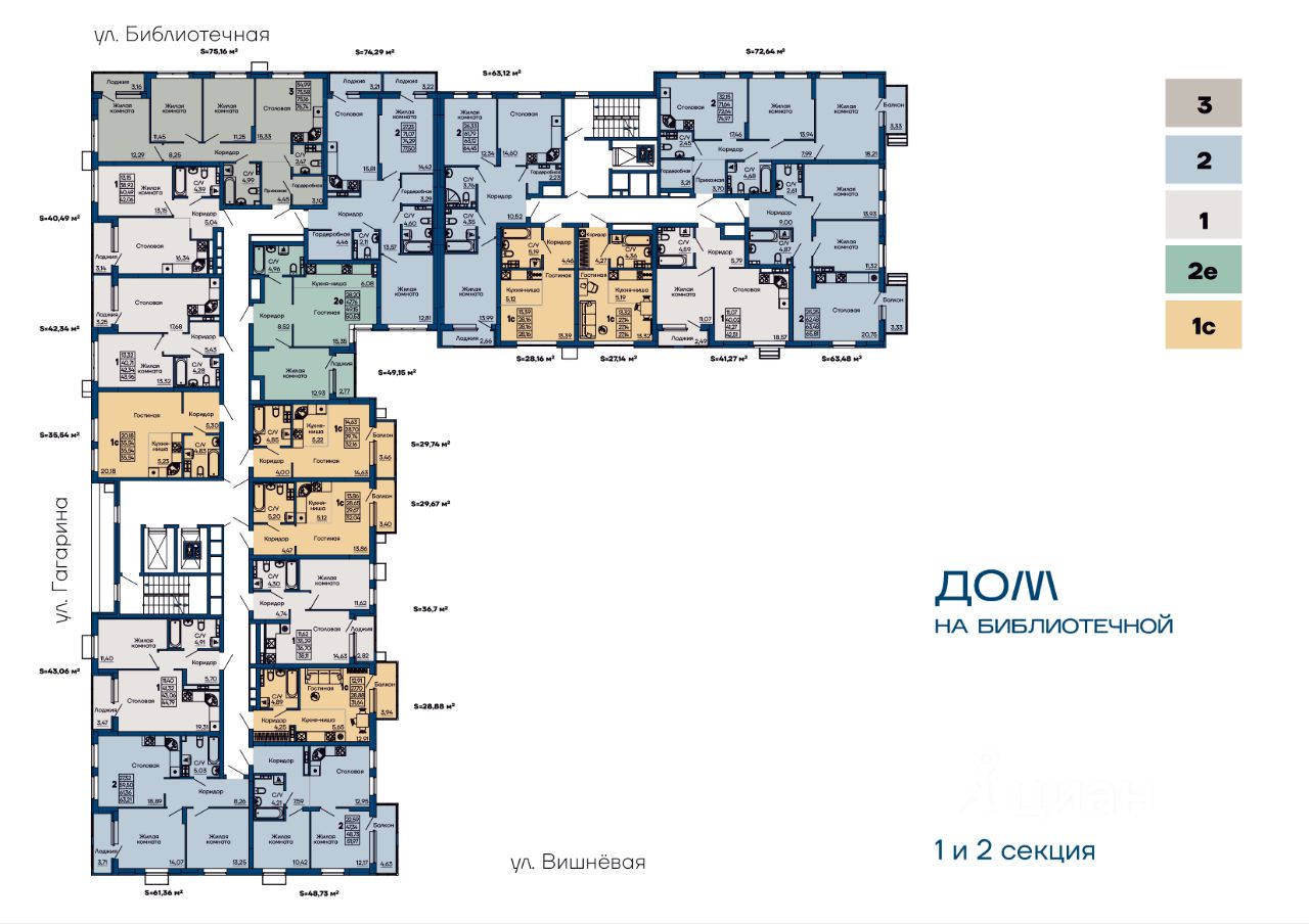 Двухкомнатная квартира с двумя лоджиями, двумя гардеробными и двумя санузлами на 2 этаже. Окна выходят на противоположные стороны, на ул. Вишневую во двор и на ул. Библиотечная. Чистовая отделка под ключ. Дом в 15 минутах от центра города. Рядом остановки общественного транспорта, школы и детские сады.
