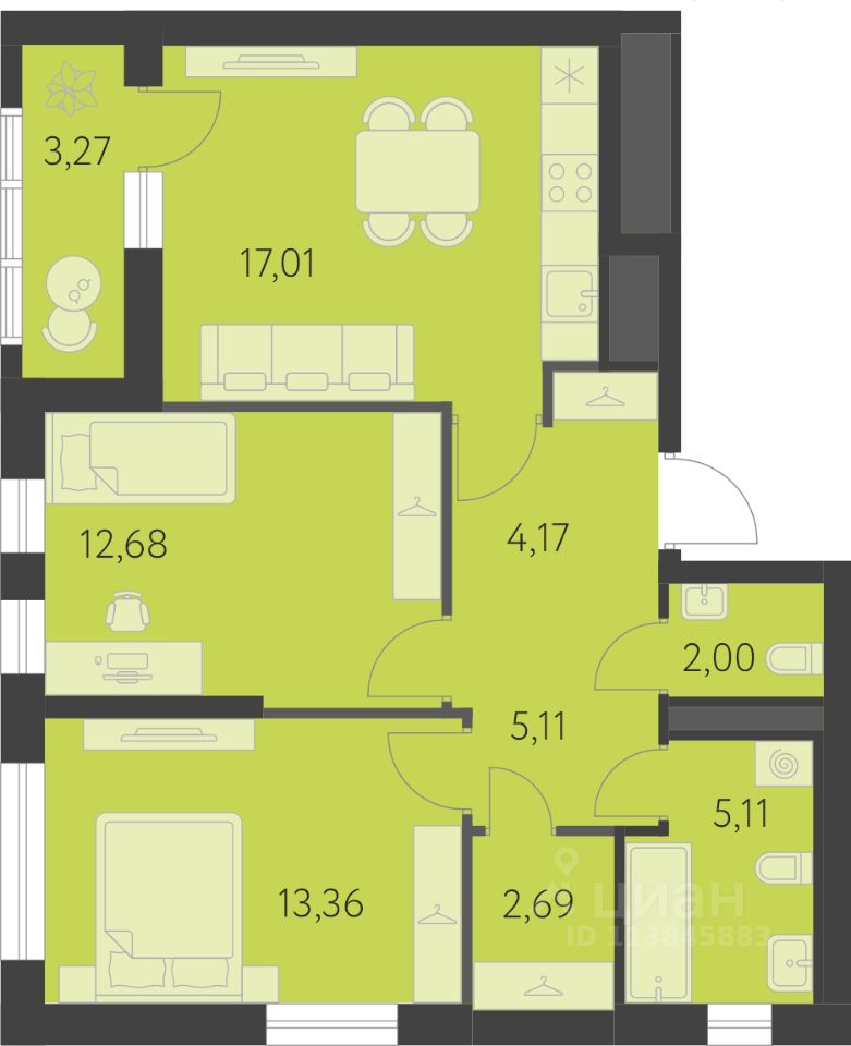 продам 2-к, Академика Парина, 13.19 725 000 ₽