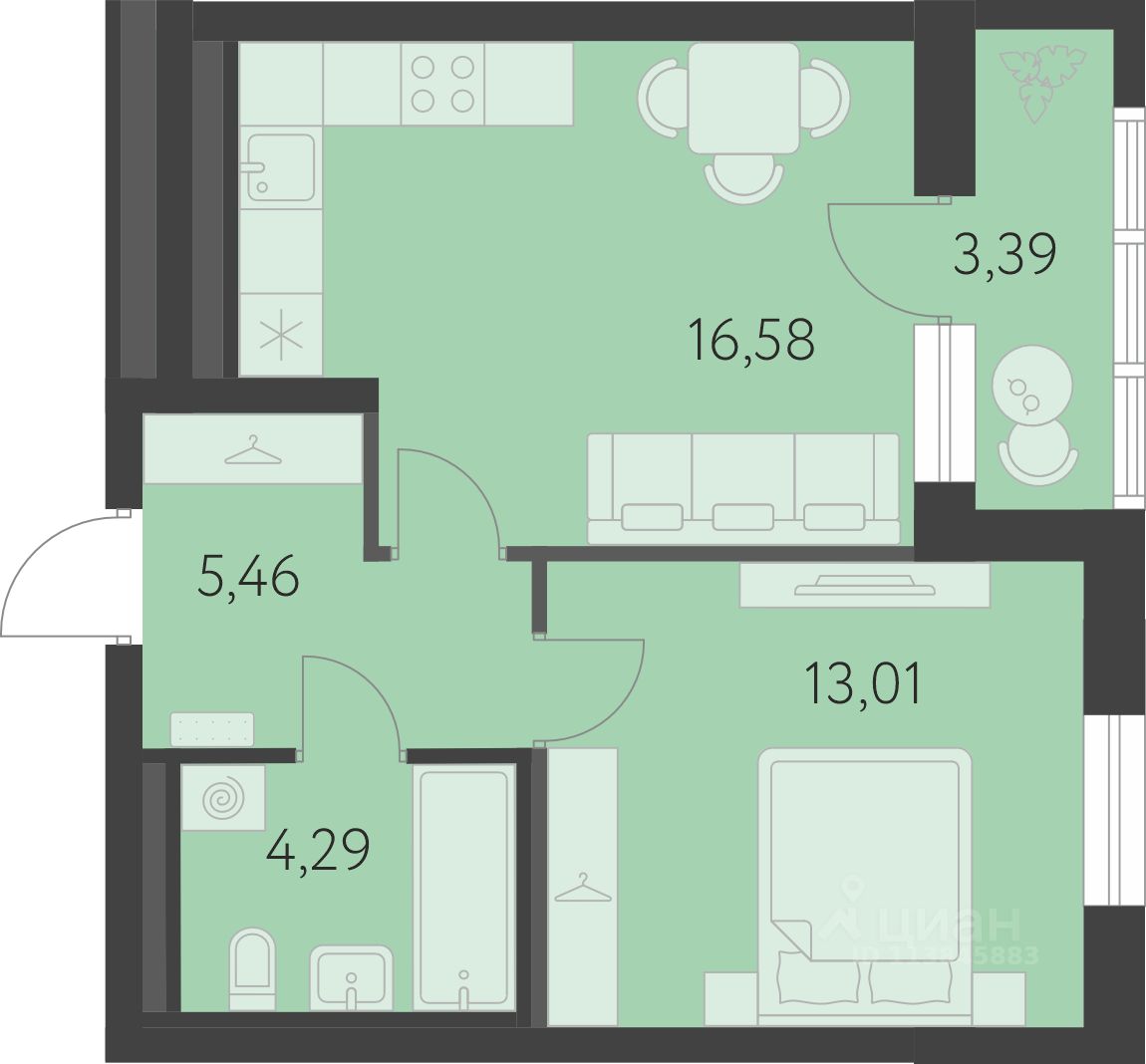 продам 1-к, Академика Парина, 13.16 812 000 ₽