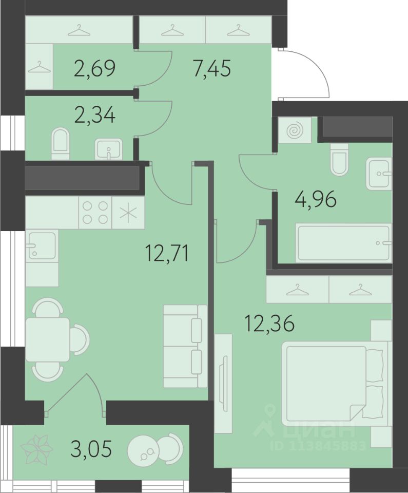 продам 1-к, Академика Парина, 13.27 453 000 ₽