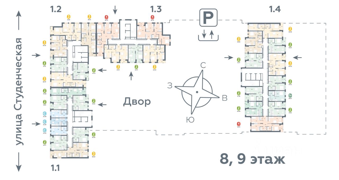 продам 2-к, Студенческая, 1д стр.7 980 000 ₽