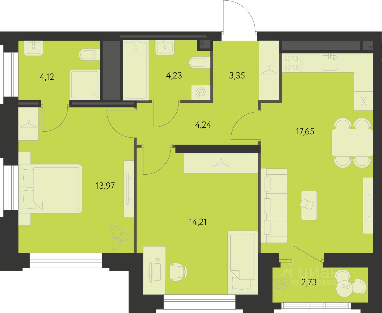 продам 2-к, Краснолесья, 94 ст210 050 000 ₽