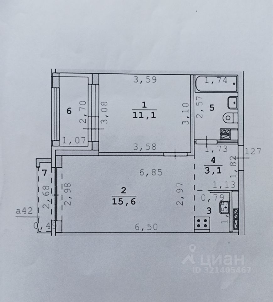 Предлагаемая квартира расположена на третьем этаже и отличается продуманной планировкой: Жилая площадь составляет 26.7 квадратных метров, а кухня-ниша занимает 2.2 квадратных метра.