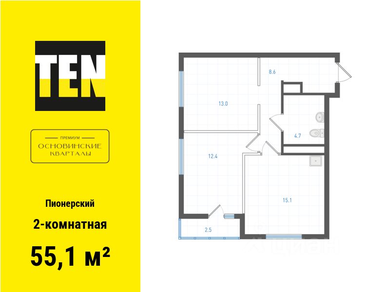 Квартира в ЖК ''ОК: Премиум'' в Пионерском микрорайоне от застройщика TEN девелопмент! Ключи во 2 квартале 2027 года. ЖК ''ОК: Премиум'' - это продолжение квартала, украсившего локацию Основинского парка, включающего 5 домов высотой от 14 до 31 этажей. Спокойный архитектурный облик, классические линии и формы, гармоничное сочетание цветовых решений все подчеркивает респектабельный характер второй очереди жилого комплекса ''Основинские кварталы''. Вдохновение природой Здесь не просто ландшафтное озеленение, а целые коллекции цветов и деревьев - различные сорта яблонь, сирени, гортензий и других растений - настоящий питомник в собственном дворе! Двор закрыт от машин и посторонних, при этом учтены интересы всех жителей как маленьких, так и взрослых. Разнообразные динамичные площадки для игр, ворк-аут зоны, амфитеатр, площадка для йоги не только созерцать, но и наслаждаться активным отдыхом! Контроль доступа, видеонаблюдение и круглосуточная охрана обеспечат безопасность для себя и близких. Спокойствие и респектабельность Входные группы прозрачные и расположены на уровне тротуара, чтобы было удобно завозить коляску или велосипед. Дизайн холлов выполнен в классическом выдержанном стиле. Для удобства жителей здесь есть мягкие зоны, колясочная и лапомойка, для автолюбителей - подземный паркинг. Свобода без ограничений Разнообразие планировочных решений позволит воплотить любые идеи и желания: насладиться видами с собственной террасы, обустроить второй уровень с потолком под 3,5 м, реализовать самые смелые дизайнерские решения. Отделка под чистовую. В санузле — монолитный потолок, на полу — гидроизоляция и стяжка, стены оштукатурены. В одном санузле установлены унитаз и раковина. В остальных помещениях потолок — монолит, на полу — стяжка, стены оштукатурены.
