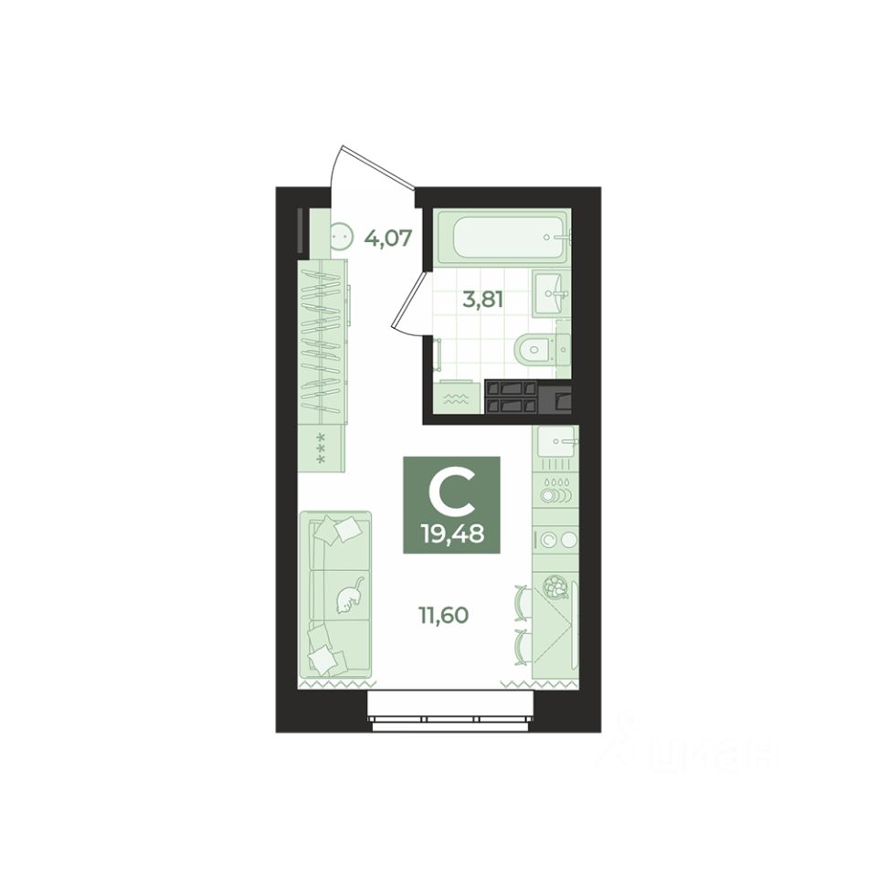 Общая площадь19,48 м2