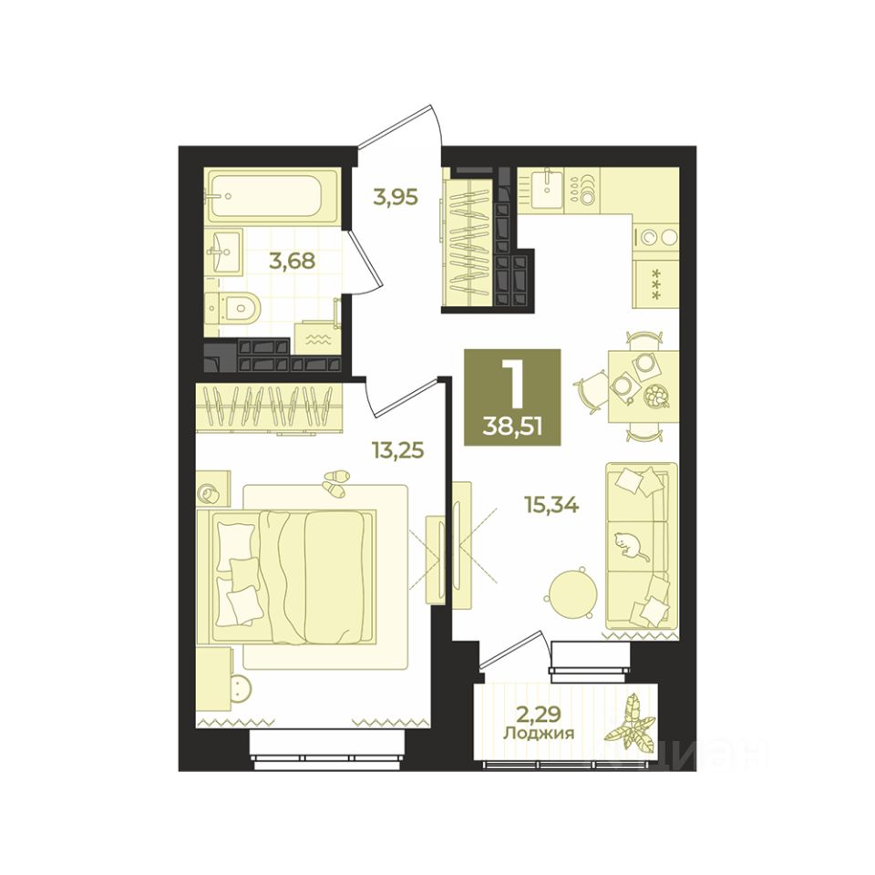 Общая площадь38,51 м2