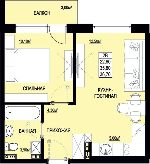 Общая площадь35,8 м2