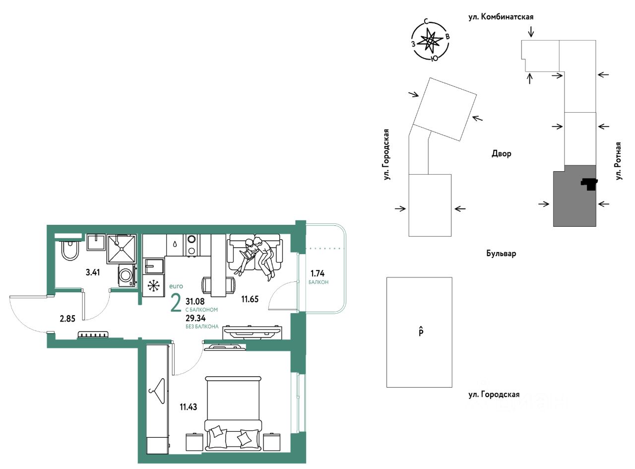 Продаётся 2-комнатная квартира в строящемся доме (Дом 1), срок сдачи: II-кв. 2027, общей площадью 31.08 кв.м., на 5 этаже. Новый жилой комплекс ''Уральский сад'' от застройщика ''ГК Страна Девелопмент'' расположен по адресу: г. Екатеринбург, посёлок Совхозный, Комбинатская улица.