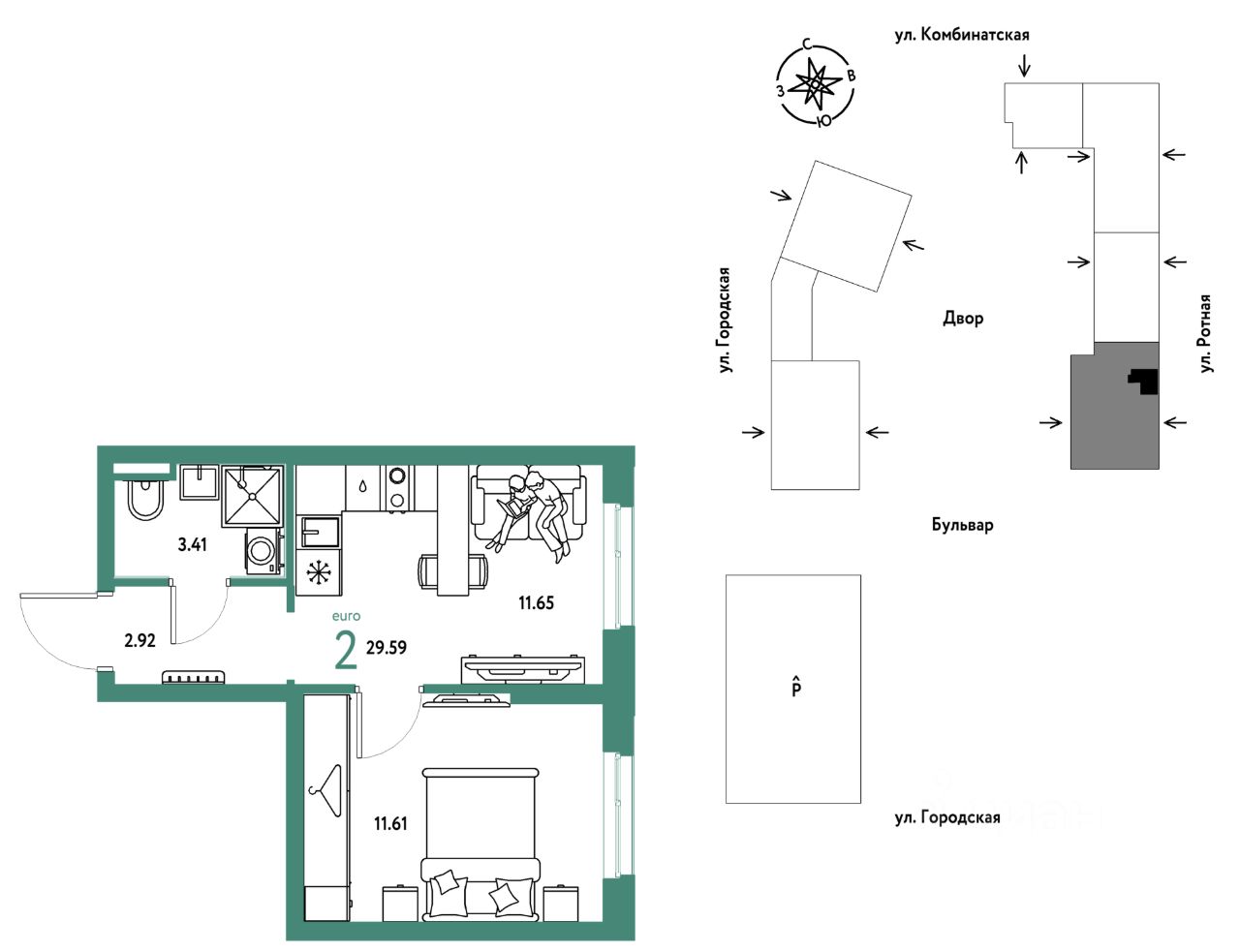 Продаётся 2-комнатная квартира в строящемся доме (Дом 1), срок сдачи: II-кв. 2027, общей площадью 29.59 кв.м., на 12 этаже. Новый жилой комплекс ''Уральский сад'' от застройщика ''ГК Страна Девелопмент'' расположен по адресу: г. Екатеринбург, посёлок Совхозный, Комбинатская улица.