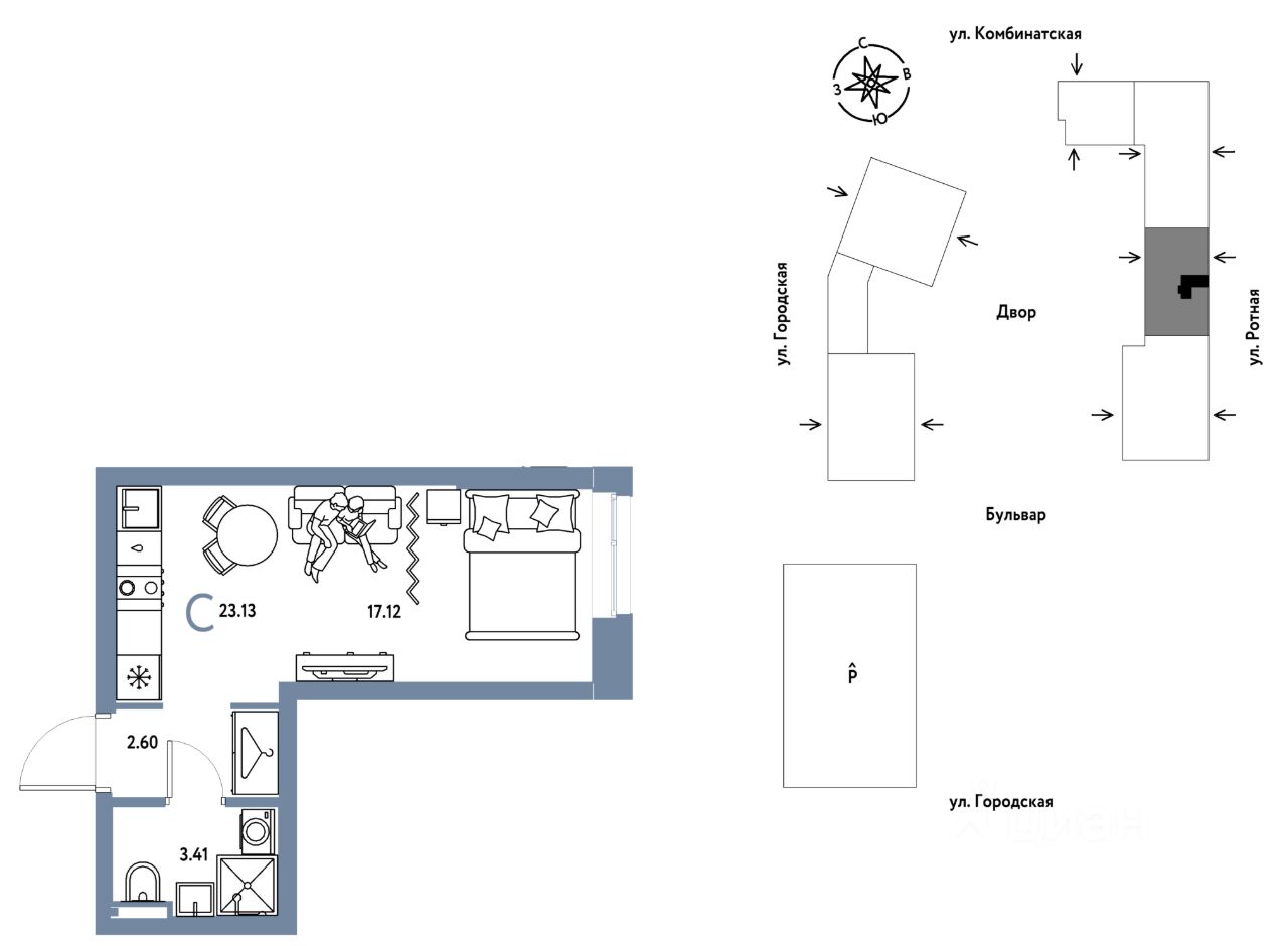 Продаётся студия в строящемся доме (Дом 1), срок сдачи: II-кв. 2027, общей площадью 23.13 кв.м., на 2 этаже. Новый жилой комплекс ''Уральский сад'' от застройщика ''ГК Страна Девелопмент'' расположен по адресу: г. Екатеринбург, посёлок Совхозный, Комбинатская улица.