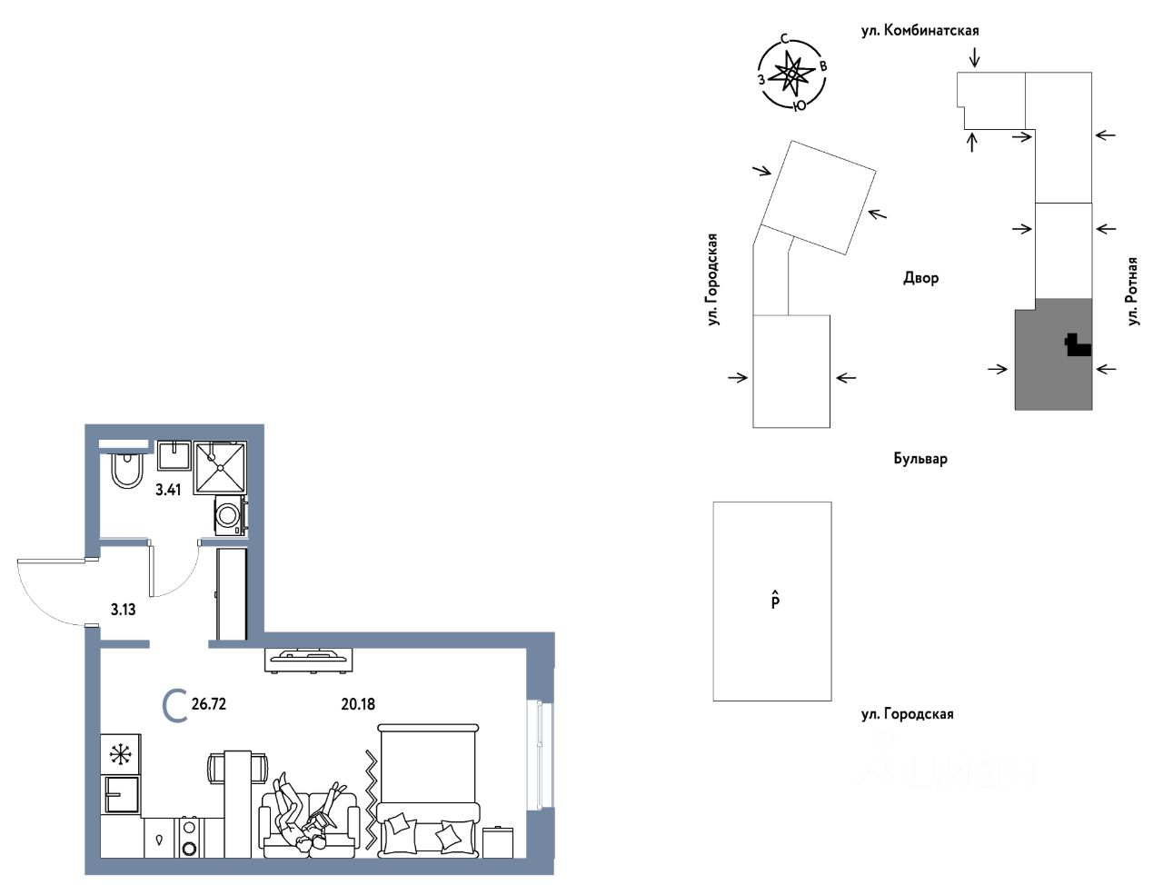Продаётся студия в строящемся доме (Дом 1), срок сдачи: II-кв. 2027, общей площадью 26.72 кв.м., на 17 этаже. Новый жилой комплекс ''Уральский сад'' от застройщика ''ГК Страна Девелопмент'' расположен по адресу: г. Екатеринбург, посёлок Совхозный, Комбинатская улица.