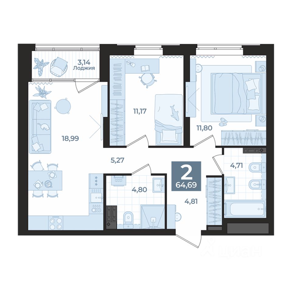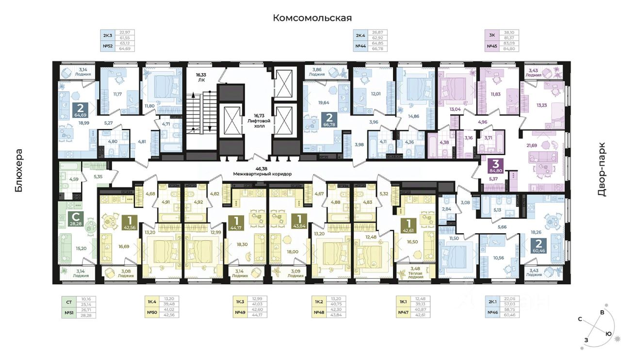 продам 2-к, Блюхера, 2611 840 000 ₽
