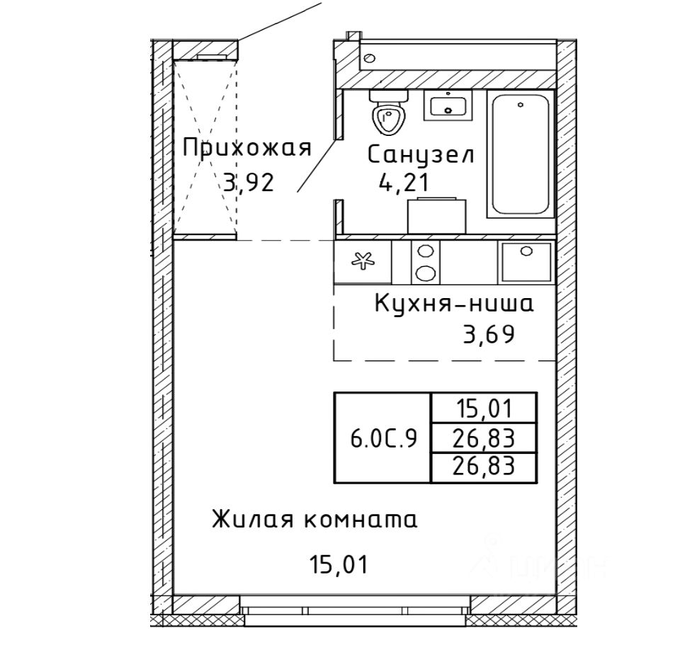 Xopoшaя плaниpовка правильнoй фоpмы, в прихожей глубокая ниша под шкаф, квадратная зона кухни и зонa гocтинoй 18.7 кв.м., шириной 4,2 кв.м., санузел 4,2 кв.м. правильной формы.