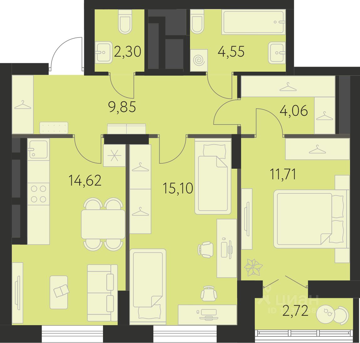 продам 2-к, Академика Ландау, 17/110 362 000 ₽