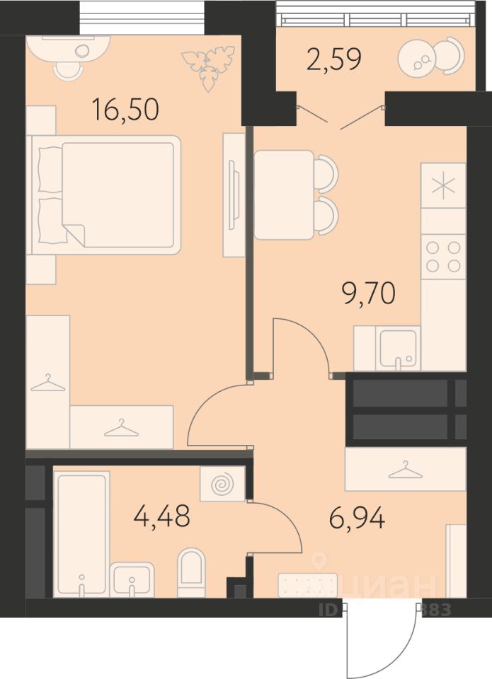 продам 1-к, Академика Ландау, 17/16 972 000 ₽