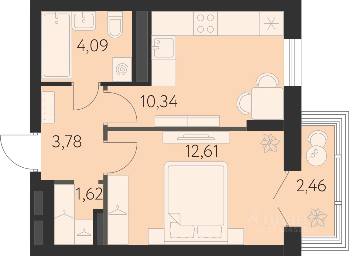 продам 1-к, Академика Ландау, 17/16 060 000 ₽