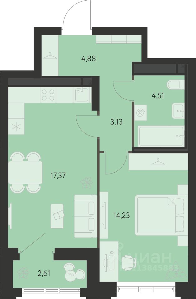 продам 1-к, Краснолесья, 94 ст28 507 000 ₽