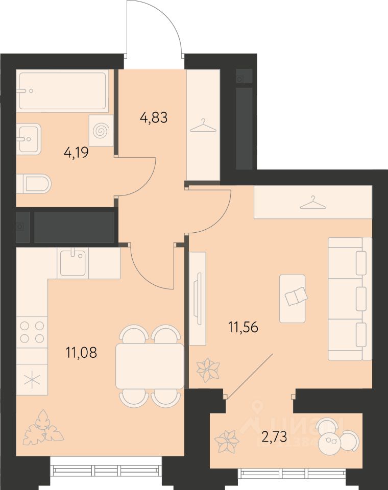 продам 1-к, Краснолесья, 94 ст26 599 000 ₽