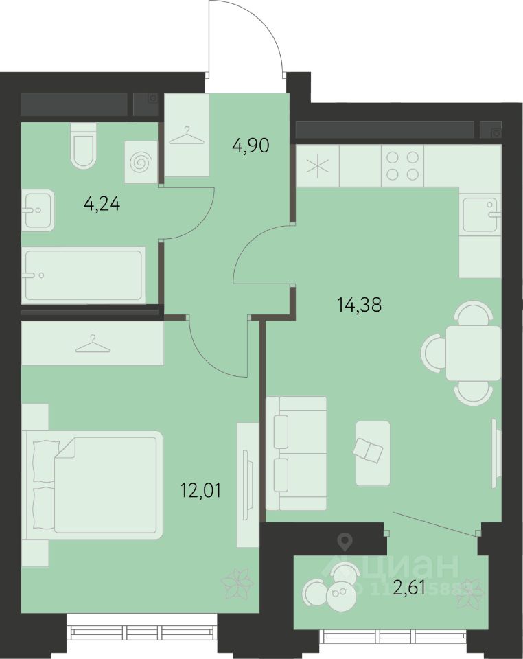 продам 1-к, Краснолесья, 94 ст27 417 000 ₽