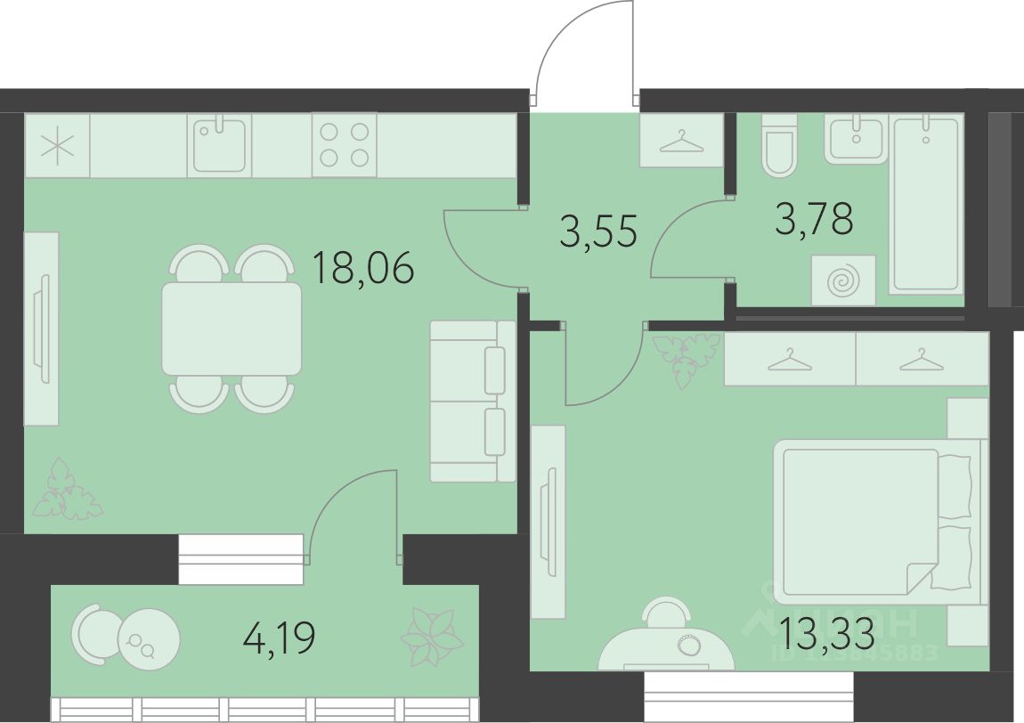 продам 1-к, Краснолесья, 4.4 стр.6 320 000 ₽