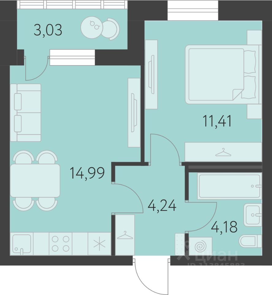продам 1-к, Краснолесья, 4.4 стр.5 839 000 ₽