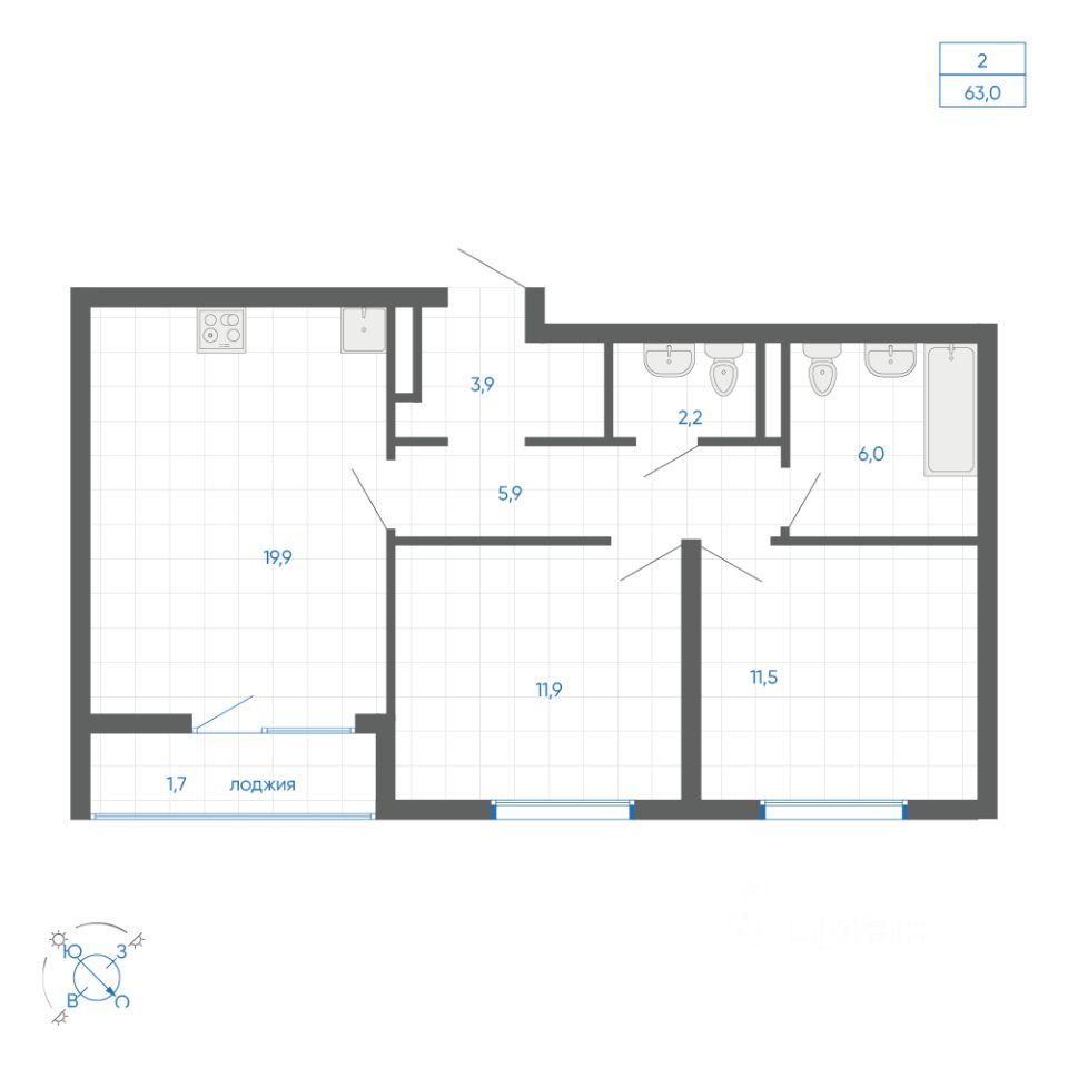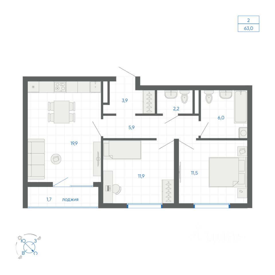 продам 2-к, Академика Парина, 12/610 800 000 ₽