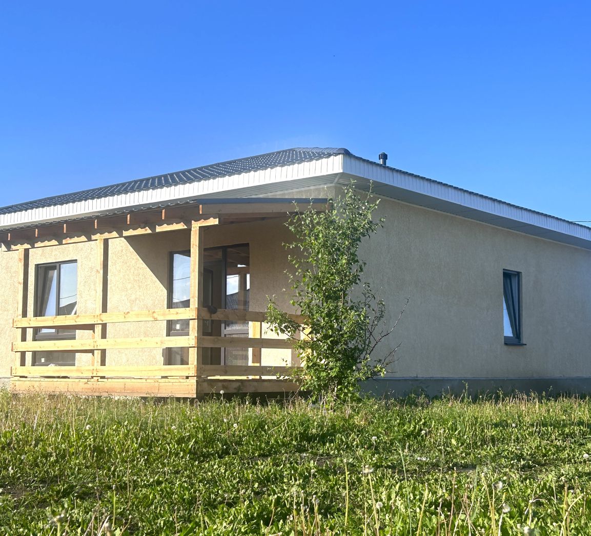 Описание дома • Современный 1-этажный коттедж в пригороде Екатеринбурга • Расположен на ровном земельном участке у соснового леса и реки • Проект Зеленая пристань с жилой площадью 98 кв метров и большой крытой террасой Конструкция и материалы • Несущие стены из ТВИНБЛОКа, межкомнатные стены из ТВИНБЛОКа и железобетонная плита перекрытия пола • В доме 9 помещений: 4 жилые комнаты, гостиная с кухонной зоной, 3 спальни, санузел, котельная с функцией 2-го сан узла, прихожая, коридор, крытая терраса, крыльцо Вентиляция и водоснабжение • Каждое помещение имеет автономную вентиляционную систему !!! • Ванная с сантехникой и разводкой под стиральную машину • Котельная с импортным электрическим котлом, скважиной, автономной станцией водоснабжения, бойлером Отделка и отопление • Отделка под ключ с использованием современных материалов: натяжные потолки, керамогранит, пластиковые окна, стальная сейф-дверь на входе • Во всём доме энергоэфефктивные теплые полы, отопление водяное от электрокотла, в посёлке есть газ Расположение и удобства • Окна расположены на юг, восток и запад, что обеспечивает естественное освещение весь день • В кухне-гостиной панорамное окно с выходом на террасу и во двор • Удачное расположение спален с видом на восход и закат Инфраструктура и документы • В шаговой доступности продуктовый магазин, остановка автобуса, в поселке есть школа, садик, промышленные магазины и даже заправка ГСМ • Дом и земельный участок оформлены в собственность на Застройщика, один собственник, без обременений и долгов • Документы к продаже готовы, оперативный показ, ипотека любого банка, любая программа