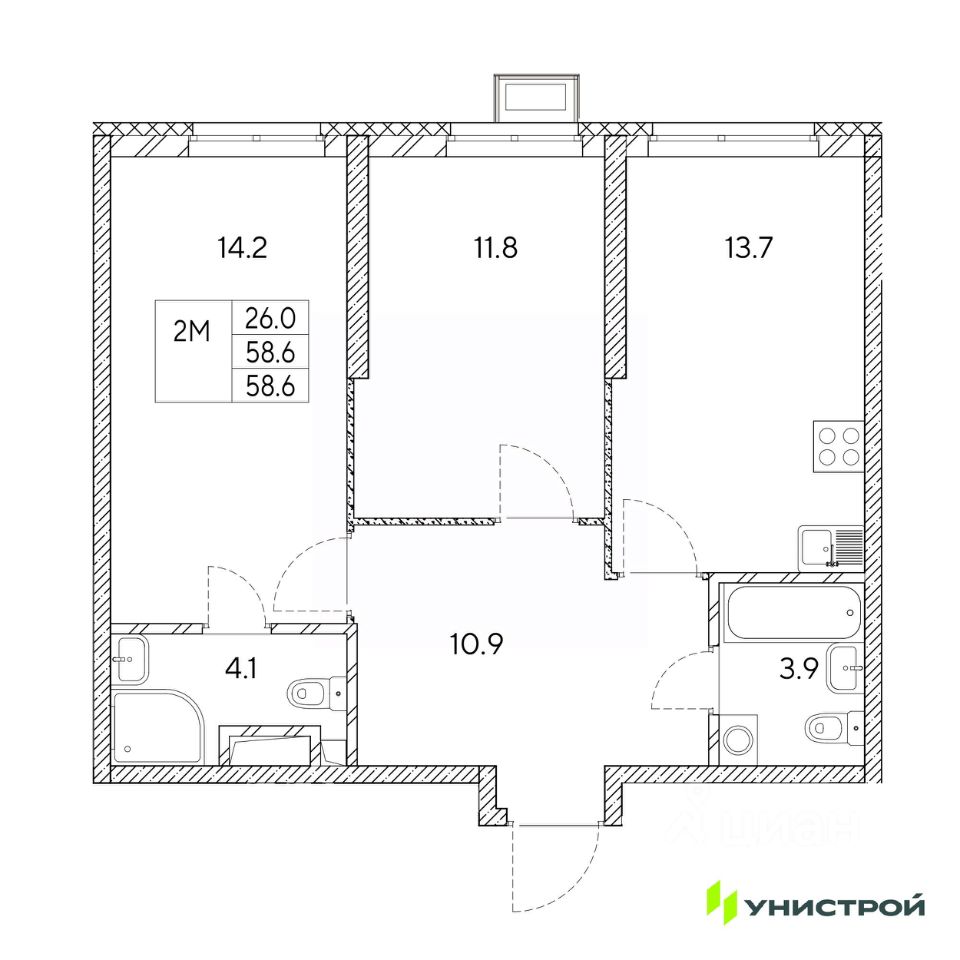 Общая площадь58,6 м2