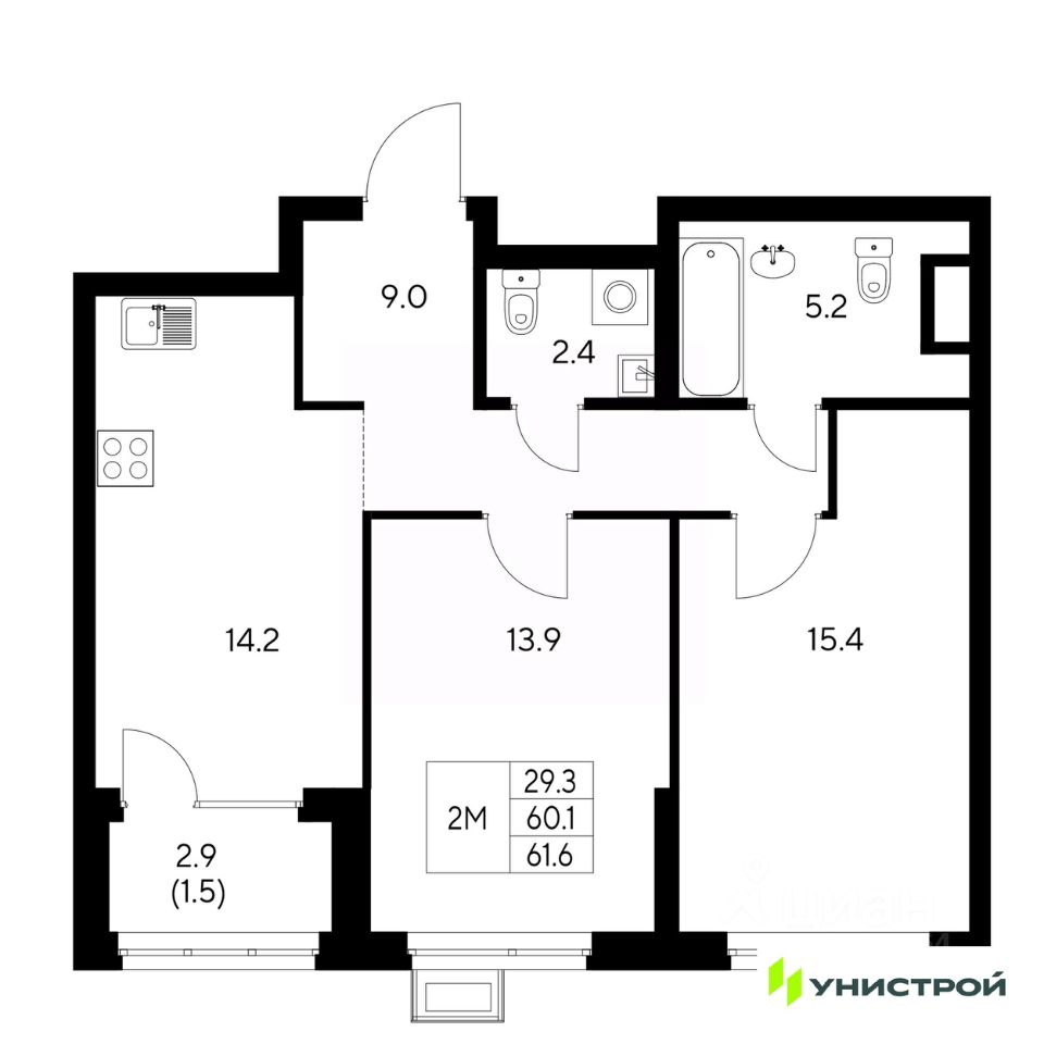 Общая площадь61,6 м2