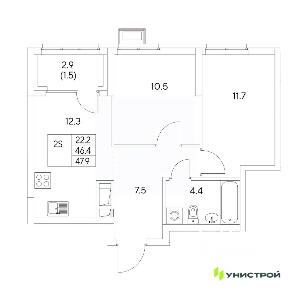Общая площадь47,9 м2
