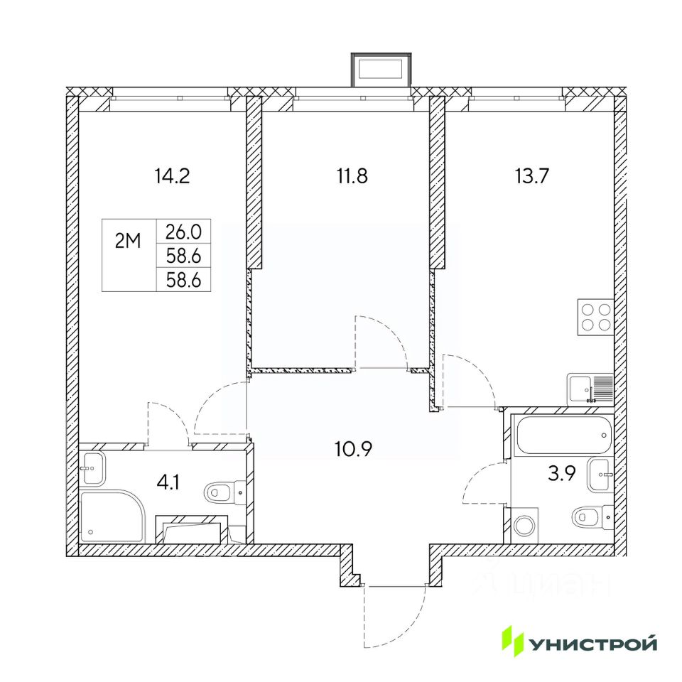 Общая площадь58,6 м2
