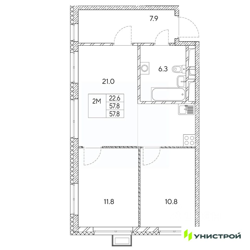Общая площадь57,8 м2