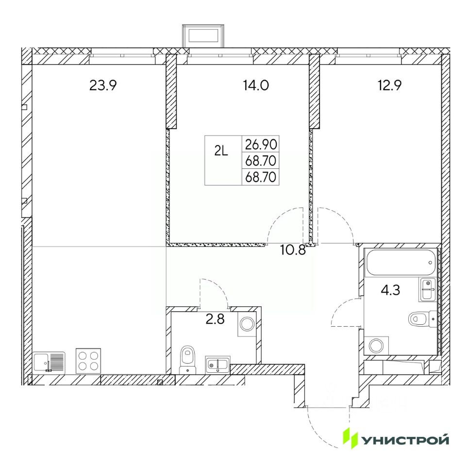 Общая площадь68,7 м2